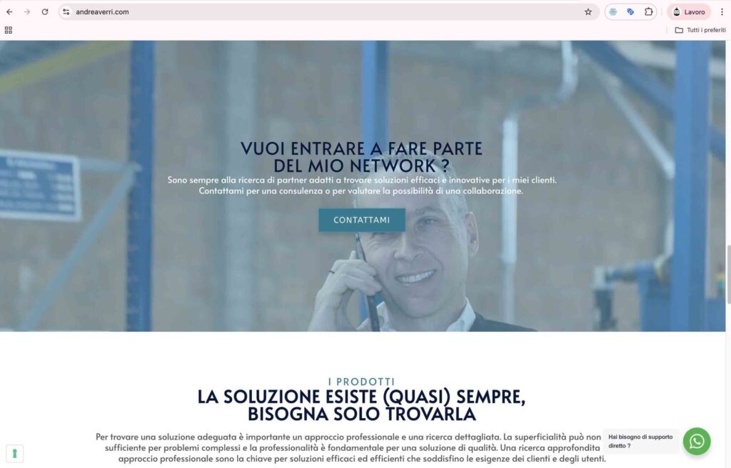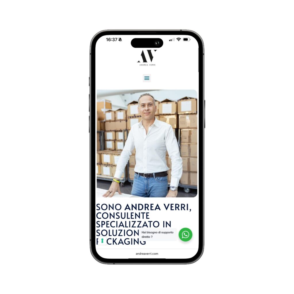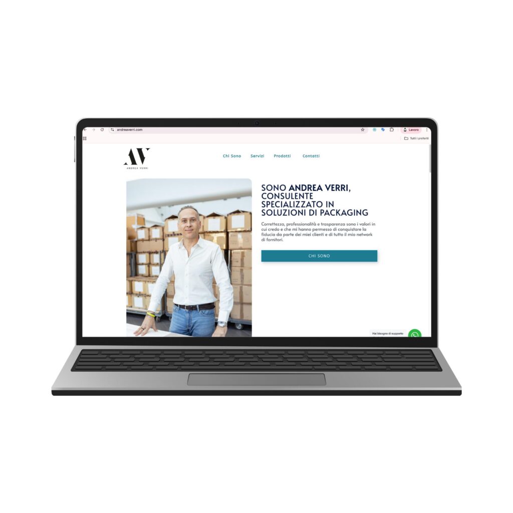 Andrea Verri è consulente specializzato in soluzioni di packaging, con competenza per settori come abbigliamento, alimentare, automotive, biomedicale, vitivinicolo e metalmeccanica. I suoi valori principali sono correttezza, professionalità, trasparenza, affidabilità e innovazione, con crescente attenzione alla sostenibilità. L’obiettivo del sito era offrire una presenza digitale professionale che comunicasse competenza e varietà di prodotti/servizi, instaurasse fiducia con clienti e fornitori e facilitasse il contatto diretto.