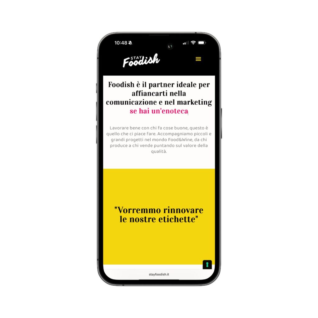 Grazie a questa struttura, il sito non solo comunica in modo efficace l’identità e i servizi dell’agenzia, ma genera fiducia, facilita il contatto e migliora il posizionamento SEO; diventa quindi uno strumento strategico per attrarre nuovi clienti nel settore Food&Wine.