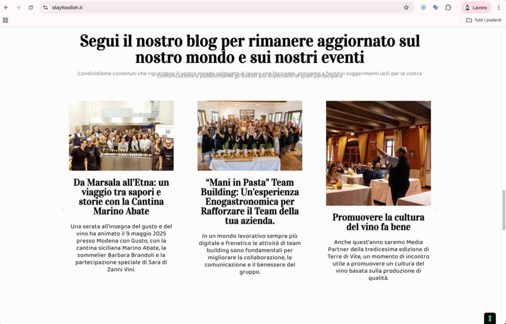 ● Blog aggiornato e ricco di contenuti, utile non solo per informare ma per migliorare SEO con articoli su eventi, novità del mondo Food&Wine e casi concreti.