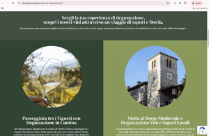 Grazie a questa struttura, la sezione consente non solo di presentare le degustazioni come esperienze uniche e ben curate, ma migliora anche la conversione tramite prenotazioni, offre trasparenza logistica e rafforza l’identità territoriale e la qualità dell’ospitalità.